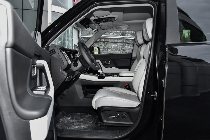 捷途山海T1座椅的材质是仿皮的材质,没有硬绷绷的感觉,触感相对比较细腻。我的身高达到1米80,体重达到180斤,我调整好主驾驶座椅位置之后,头部还会有一拳半的空间,腿部也会有两拳左右。主驾驶位置支持电动调节,还有前后以及靠背角度调节按钮的位置也是比较顺手的,就在座椅的侧面,并不需要去弯腰寻找。前排座椅的功能相对比较丰富,例如前排有加热通风功能。夏天的时候通风功能是比较实在的,在长途开车时打开通风功能就可以缓解后背闷热。主驾驶位置还会有记忆功能,我和老婆更换开车时我也不需要反复的调整,轻松就可以切换。